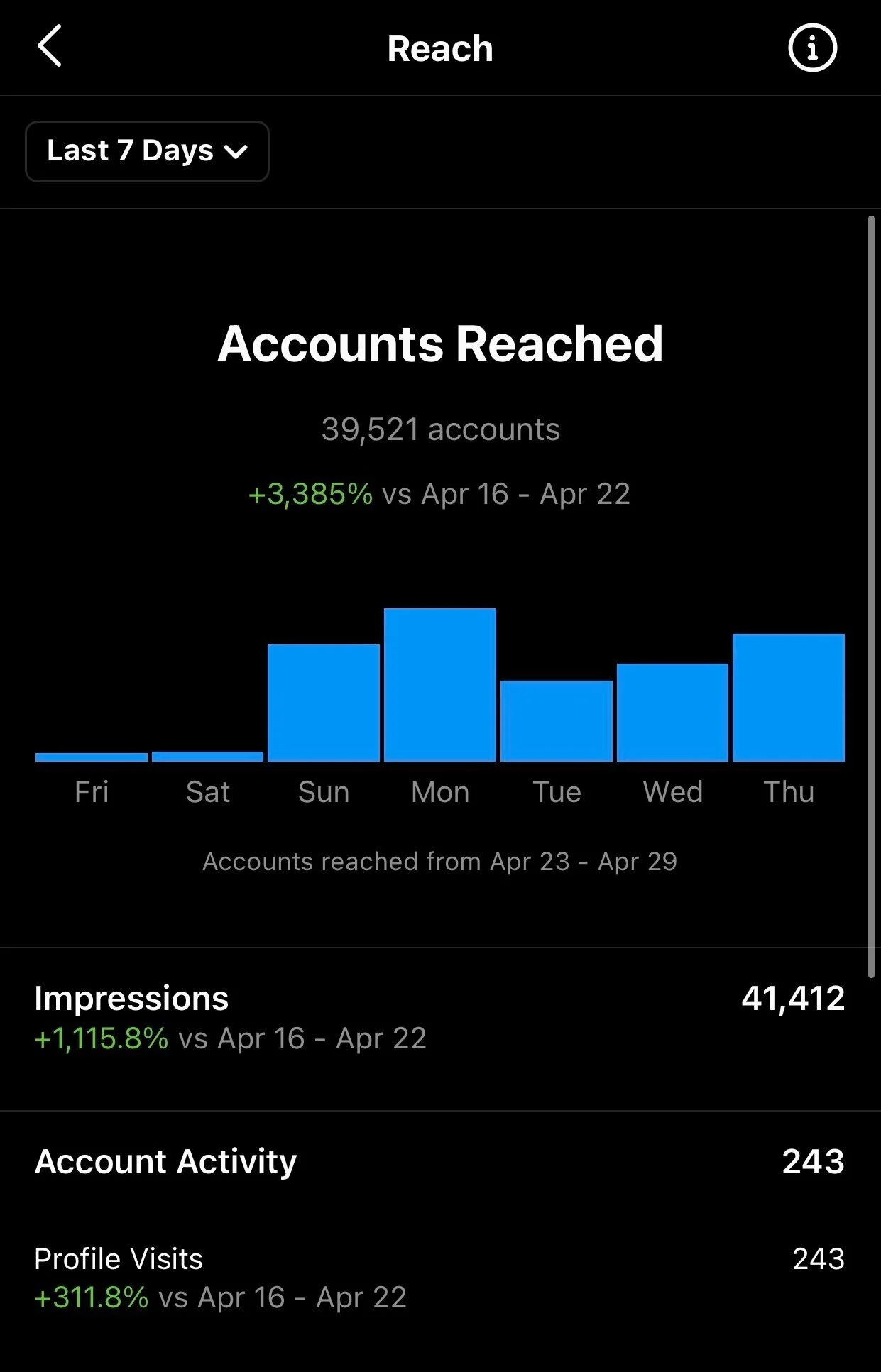 IG: 184k organic impressions on IG